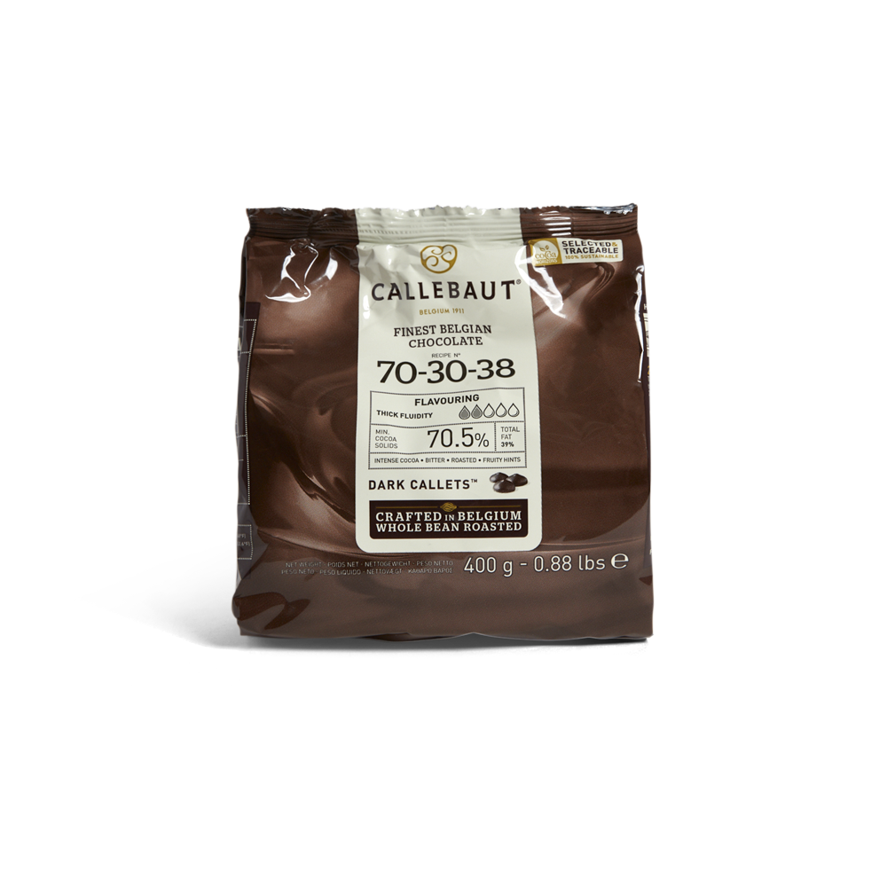 Callebaut’s n° 70-30-38 is one of the dark chocolates that is favoured by many chefs and chocolatiers all over the globe. Featuring an intense, yet very balanced chocolate taste, this dark couverture chocolate is grounded by its solid body of roasted cocoa and powerful bitters.