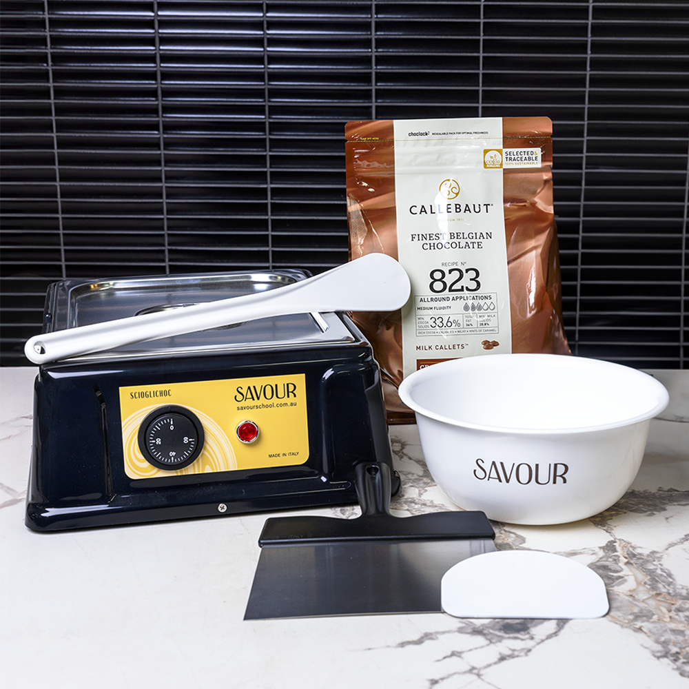Our new favourite product! The Chocolate All Day tempering bowl comes in a handy 1 litre size that's perfect for those small chocolate tempering jobs. Its also the perfect complement to the 2.5L and 4.5L version of our microwave safe chocolate tempering bowls.