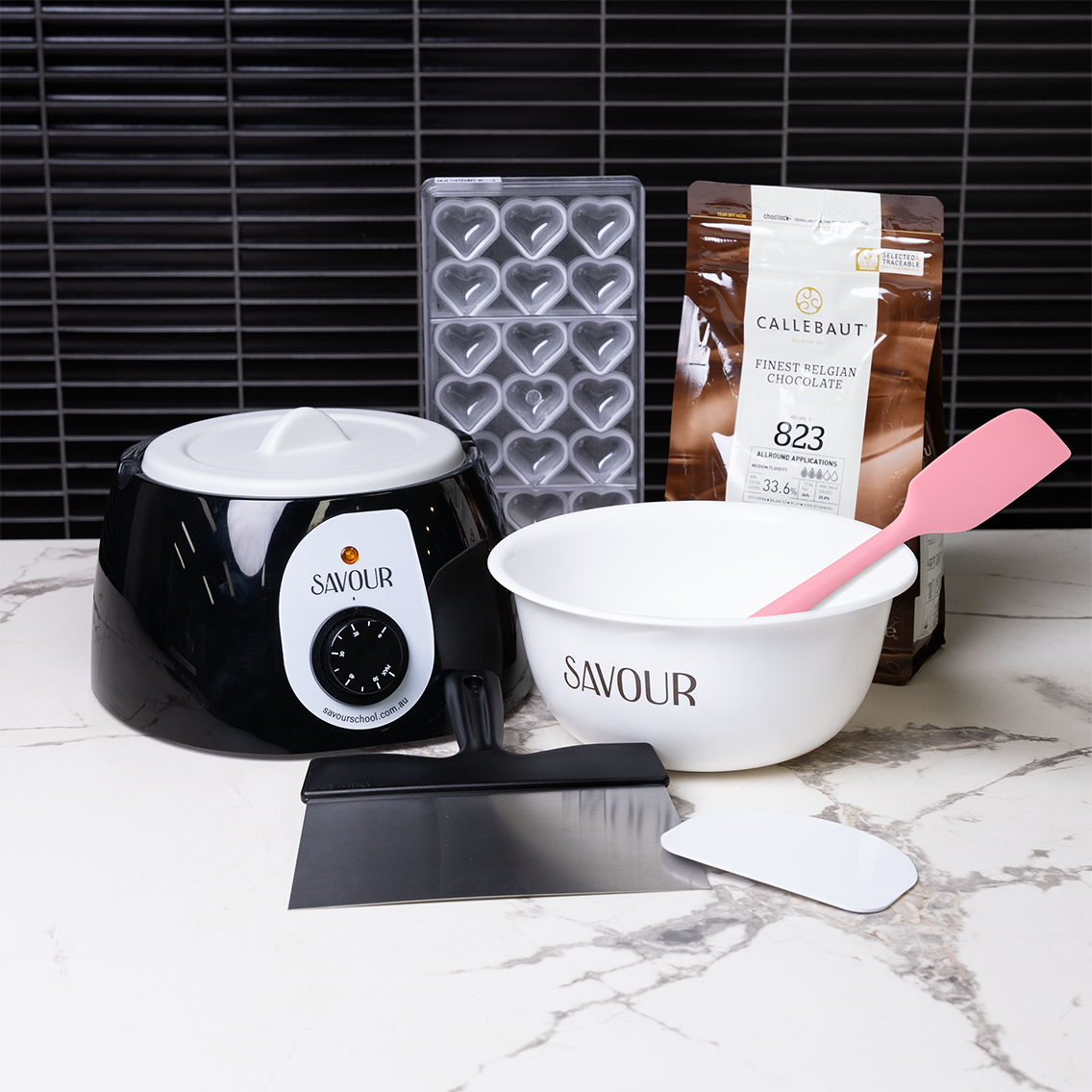 Chocolate melting tanks are designed to melt and maintain the temperature of tempered chocolate. Savour's 6L tank is the ideal size for use with standard sized chocolate moulds as you can work directly over the tank, minimsing waste and mess.