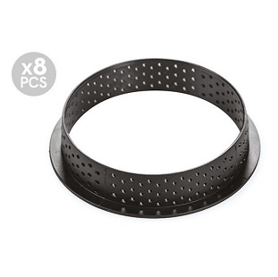 The Silikomart Tarte range is made of thermoplastic composite crush-proof material, suitable for baking. Perforated tart rings ensure an even bake and also help to prevent air bubbles forming on tart shells. The nonstick surface makes removing baked tart shells a breeze. The rings are sturdy and wont loose their shape.