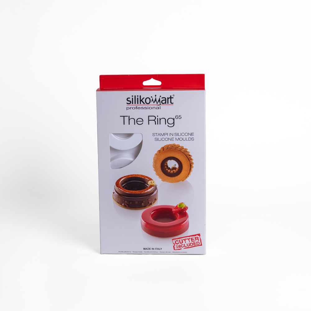 The Ring 65 Silicon Mould is ideal for creating individual portions and plated desserts. It is composed of a silicon multiform mould which allows you to create 6 semifreddo or baked portions, a multiform mould suitable to create 6 inserts and decorations and a practical double-use cutter to make original inserts and/or bases. The Ring 65 Silicon Mould is born from the collaboration between Silikomart Professional designers and the talented Pastry Chef Amaury Guichon.